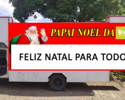 Caminhão do Papai Noel está agitando os bairros da cidade