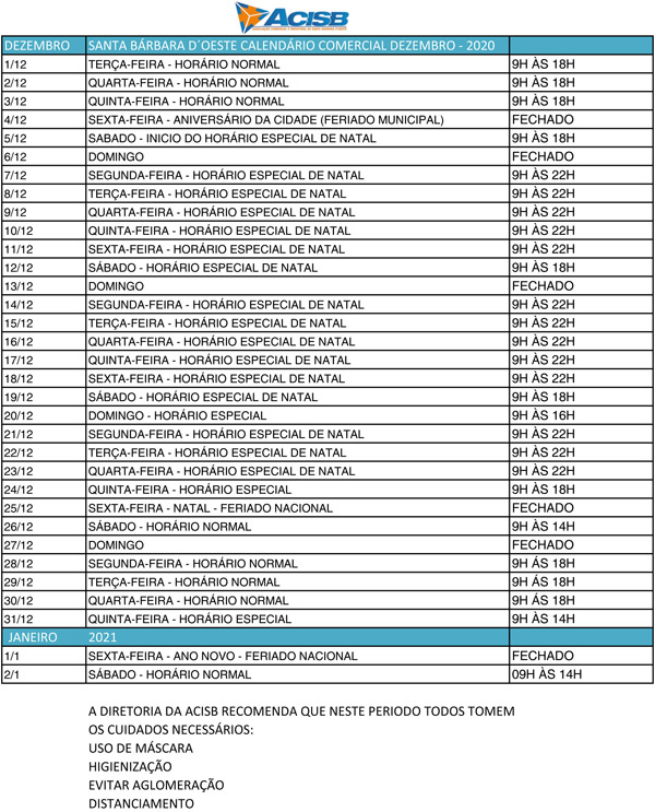 Home / Notícias / Acisb divulga CALENDÁRIO COMERCIAL DEZEMBRO – 2020 Acisb divulga CALENDÁRIO COMERCIAL DEZEMBRO – 2020 30/10/2020 Por: acisb Acisb divulga CALENDÁRIO COMERCIAL DEZEMBRO – 2020 Search Últimos Posts Como novidades, Jantar dos Empresários 2026 abre oportunidades para patrocinadores Presidente e vice da ACISB presentes na festa de 65 anos da ACIA Diretores da ACISB visitam fábrica da Hyundai em Piracicaba Endividamento volta a crescer e inadimplência gera preocupação NRC da ACISB devolve mais de R$ 220 mil ao mercado em 2025