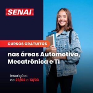 A Acisb informa que o SENAI de Santa Bárbara d´Oeste está promovendo cursos gratuitos nas áreas automotiva, mecatrônica e TI