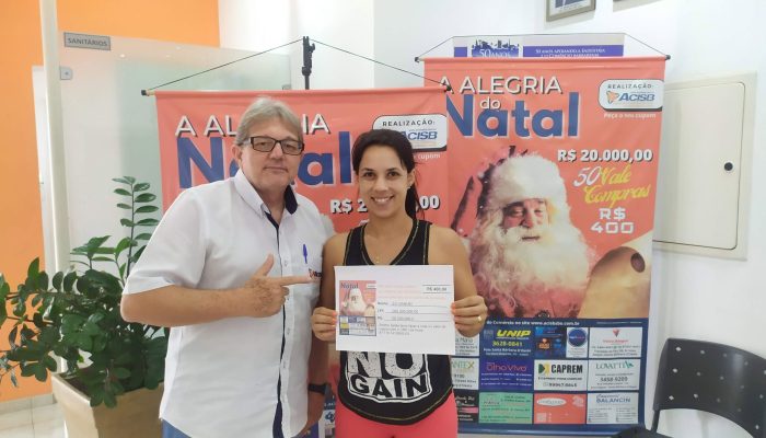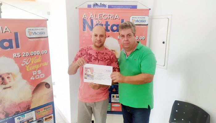A diretoria da Acisb (Associação Comercial e Industrial de Santa Bárbara) realizou neste sábado, dia 14 de janeiro, às 10h, em sua sede, localizada à Rua Duque de Caxias, 490, centro, a entrega dos prêmios da Campanha “A Alegria do Natal”. A iniciativa sorteou 50 vales-compra no valor de R$ 400,00, num total de R$ 20 mil, aos consumidores que fizeram suas compras nas lojas participantes da promoção.