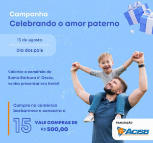 A partir do dia 17 de julho, a Acisb (Associação Comercial e Industrial de Santa Bárbara d’Oeste) promove campanha alusiva ao Dia dos Pais “Celebrando o Amor Paterno”.