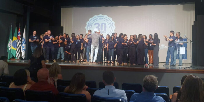 O presidente Ricardo Fernandes Betin e seu vice Roberto Bonamin representando a diretoria da Acisb, participaram do aniversário de 30 anos do Escritório Regional do Sebrae-SP, de Piracicaba nesta semana. O evento aconteceu no Teatro Erotídes de Campos, localizado no Engenho Central.