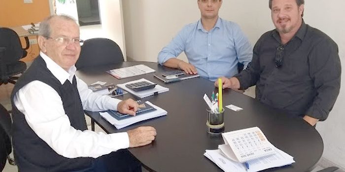 Na foto João Batista de Paula Rodrigues presidente da Acisb, Pedro e Maurício Auskaps do comercial da Emotta Sistemas.