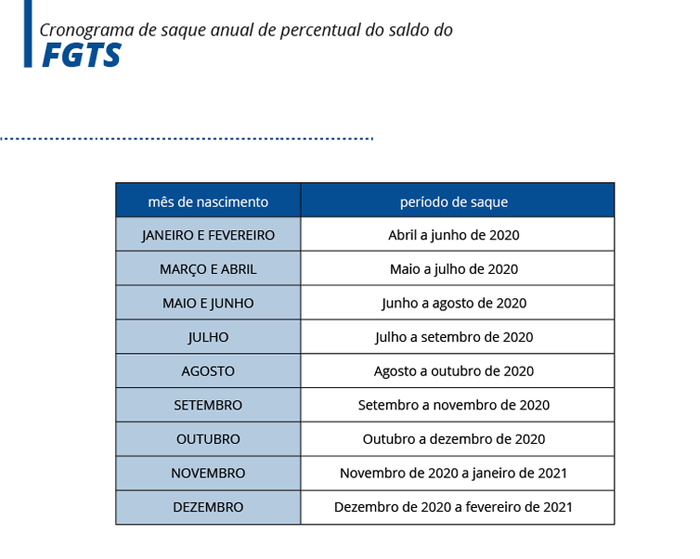A partir de abril de 2020, terá início o saque anual de percentual do saldo do FGTS.