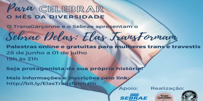 Para celebrar o mês da diversidade, será realizado a capacitação “Elas Transformam”. A ação faz parte do programa Sebrae Delas e terá 4 dias de duração, voltados a mulheres trans e travesti, com o objetivo de apoiá-las na jornada pelo universo do Empreendedorismo.