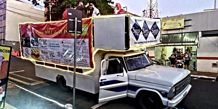 O caminhão do Papai Noel estará acontecendo nos dias 12 a 16 de dezembro e de 19 a 23 de dezembro, das 19h às 21 horas saída e chegada na sede da entidade a Rua Duque de Caxias, 490, centro de Santa Bárbara. O trio elétrico do Papai Noel da Acisb estará visitando os bairros e centro de nossa cidade com distribuição de bolas e balas sempre das 19h às 21 horas.