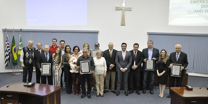 Com a presença dos diretores João Batista de Paula Rodrigues, Antonio Roberto Bonamin, João Rozinali, Aldo Padovese, Ricardo Betin, Talita Delmondes, Adega Junior e Claudio Peressim que é vereador e vice-presidente da Câmara, participaram da entrega da honraria aos empresários escolhidos deste ano.