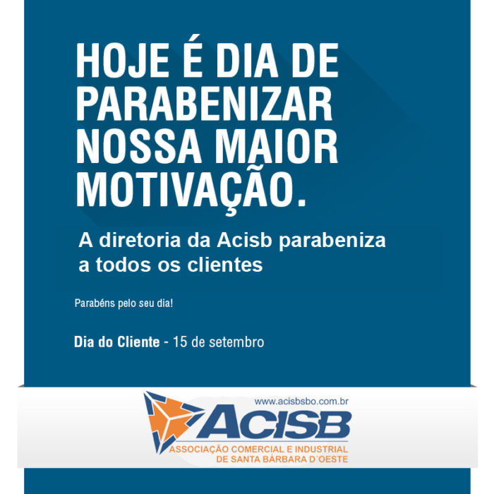 A Acisb parabeniza todos os Clientes pelo seu dia comemorado nesta terça-feira (15) em todo o Brasil, o Dia do Cliente. Em tempos de pandemia e isolamento social, os empreendedores tiveram que rever estratégias para, mais do que nunca, cativar o cliente, que é a razão de qualquer empreendimento comercial. Um estudo recente do Sebrae mostrou que nos últimos meses 82% dos empresários registram queda do faturamento e 32% dos que conseguiram aumentar o faturamento investiram nas vendas on-line. Daí a necessidade de procurar entender e agradar o cliente.
