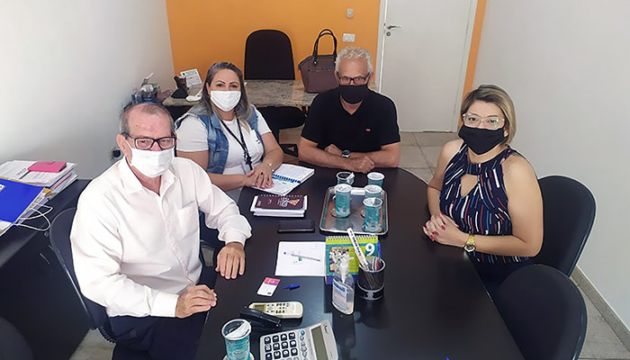 Foto: João Batista de Paula Rodrigues presidente da Acisb, Claudina gestora comercial, Roberto Bonamin diretor da Acisb e Patricia Candian da área de Marketing e Negócios da Unimed.