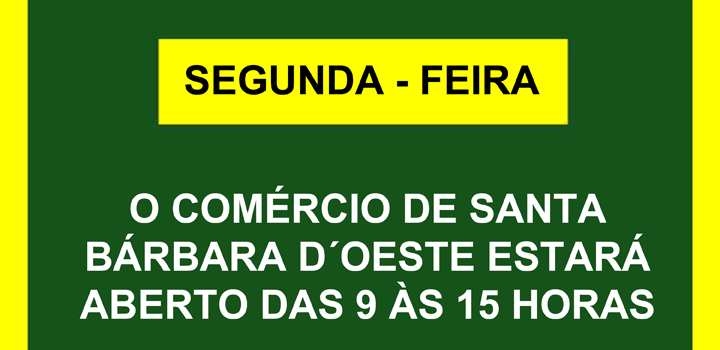 A Acisb (Associação Comercial e Industrial de Santa Bárbara d´Oeste), comunica que nesta segunda-feira 7 de setembro, o comercio estará aberto em horário especial conforme calendário acordado para a abertura do comercio em 2020.