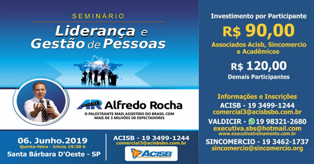 SANTA BÁRBARA D’OESTE vai receber o Seminário Liderança e Gestão de Pessoas apresentado por ALFREDO ROCHA, o Palestrante mais assistido do Brasil com mais de 3 milhões de espectadores.